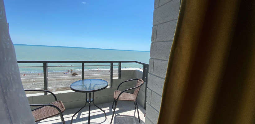 Комплекс расположен у кромки мелкогалечного пляжа. Из окон открывается вид на морскую панораму, а берег оснащен шезлонгами, зонтами и душевой зоной, что формирует удобные условия для расслабленного времяпрепровождения. Близость моря делает отдых особенно комфортным в любой сезон.