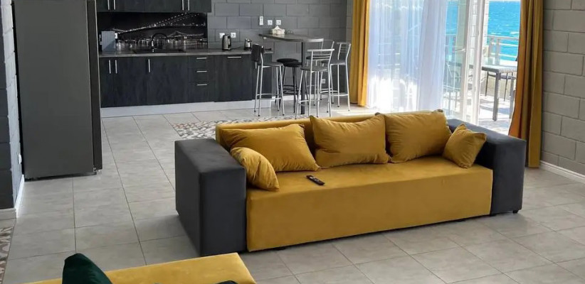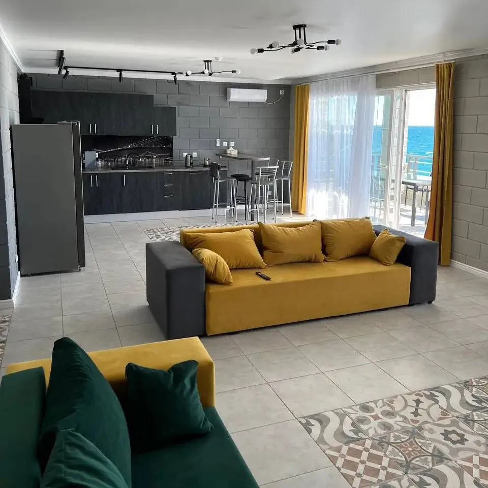 70 м2, двуспальная кровать, отдельная гостиная, диван-кровать, кухня, две обеденные зоны, балкон с видом на море. Количество гостей: 43-комнатные апартаменты