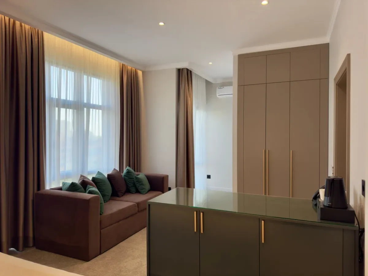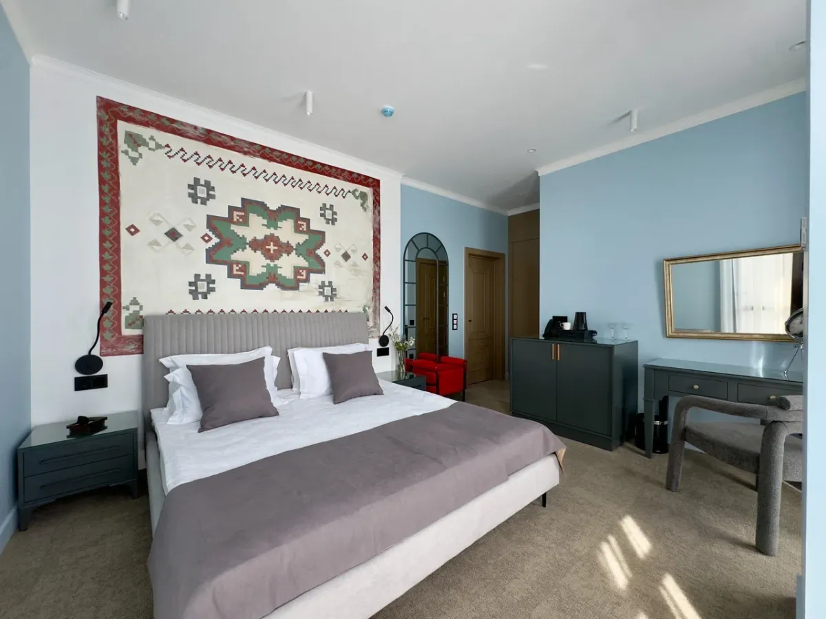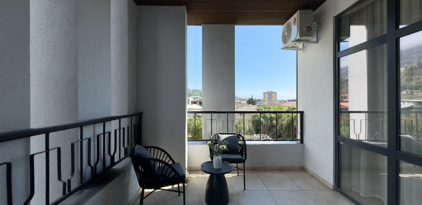 25 м2, однокомнатный номер с балконом, на стенах художественная роспись, мозайка ручной работы, легенды Абхазии из глины, количество гостей: 2 осн. + 2 доп.Двухкомнатный семейный номер/ Family room