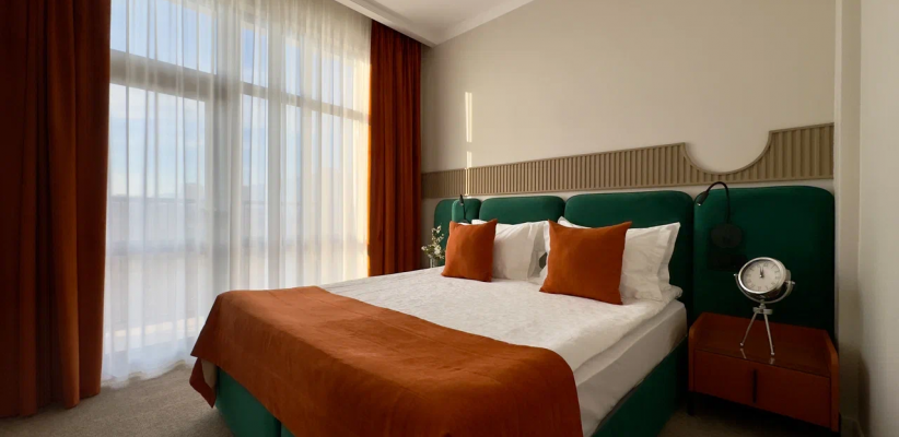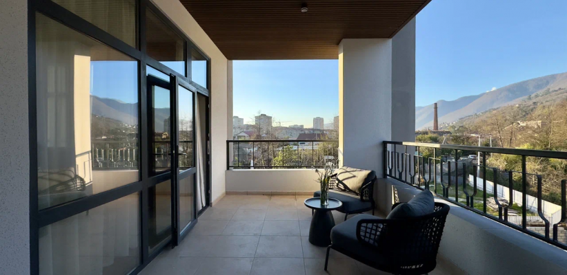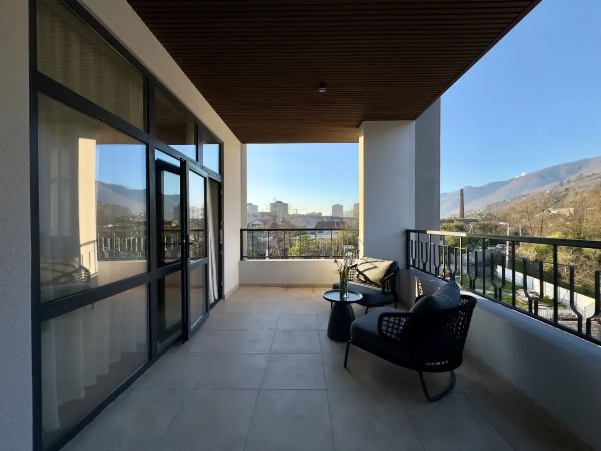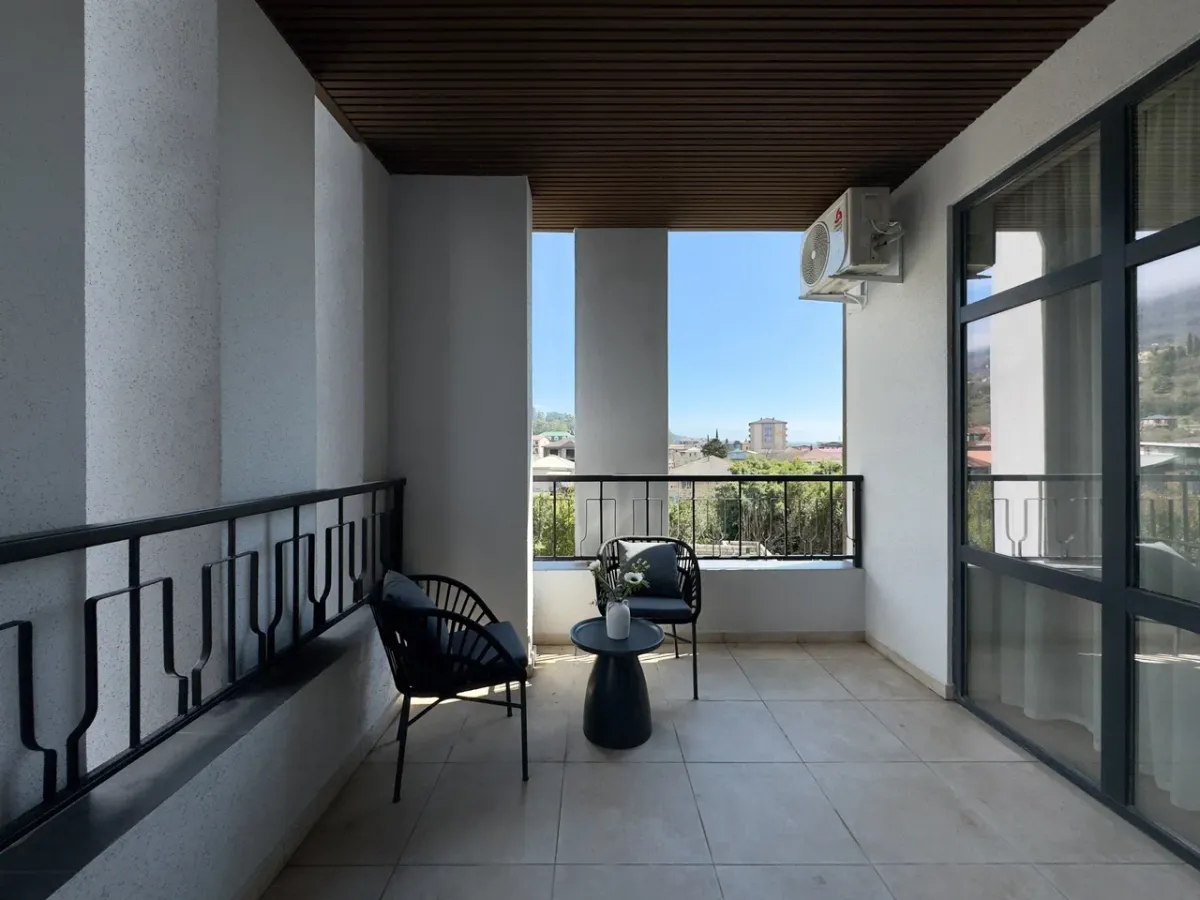 25 м2, однокомнатный номер с панорамными окнами и видами на горы, терраса с лежаками и зонтами, количество гостей: 2 осн.Люкс двухкомнатный с террасой/ Suite with a terrace