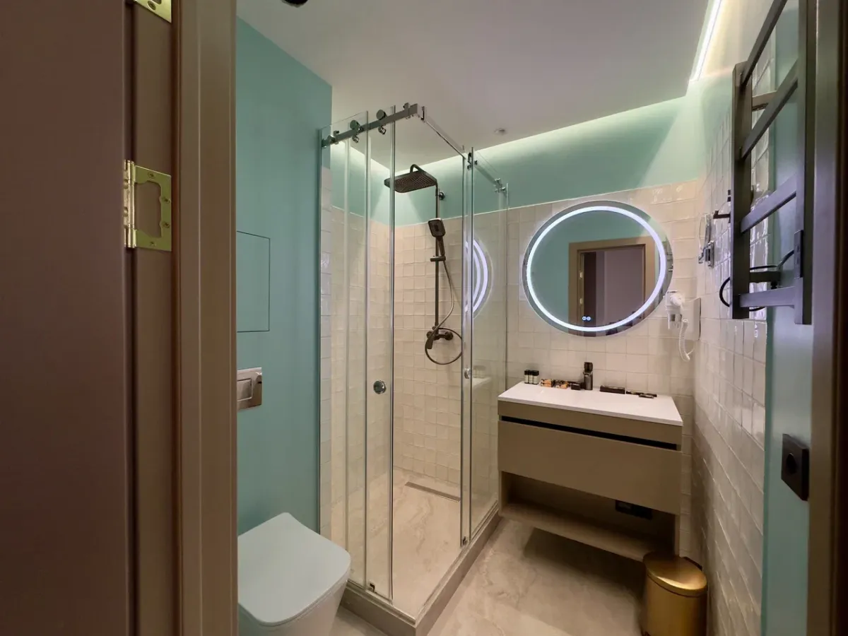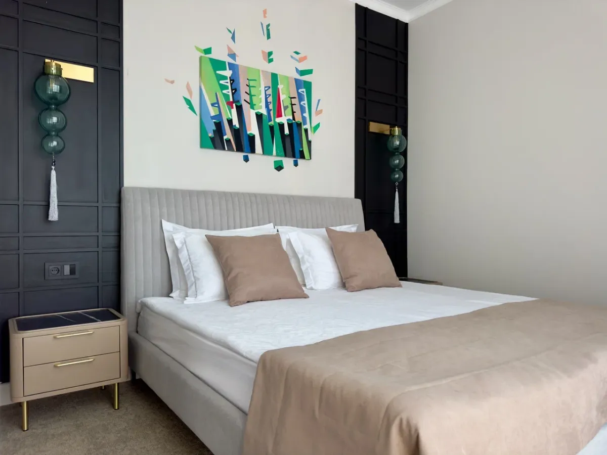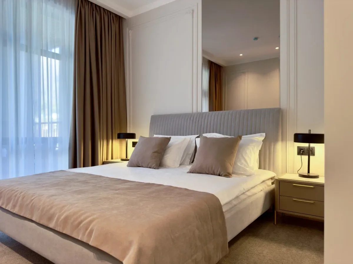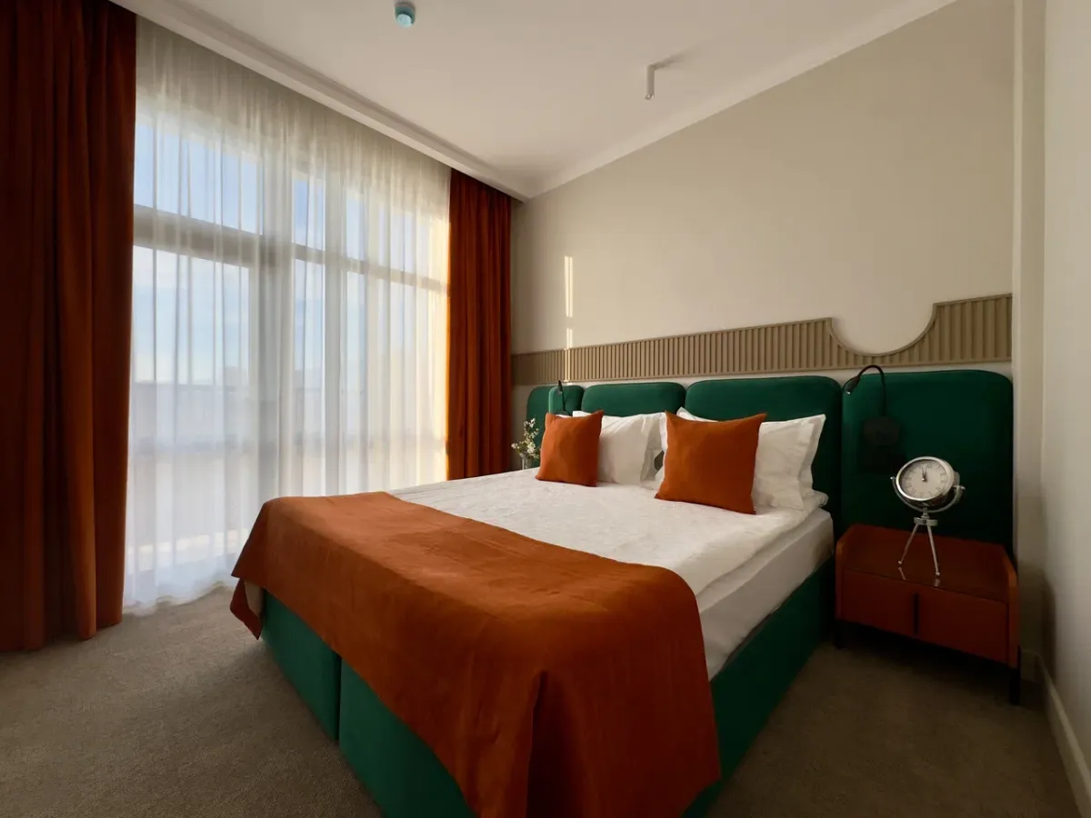 35 м2, две комнаты, количество гостей: 2 осн. + 2 доп.Номер повышенной комфортности с террасой/ Deluxe with a terrace
