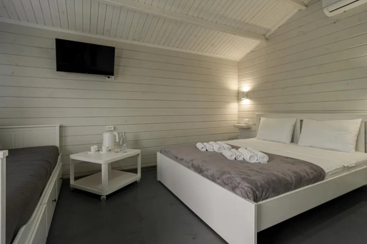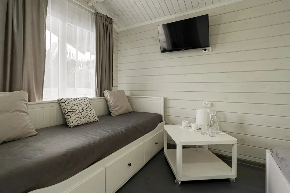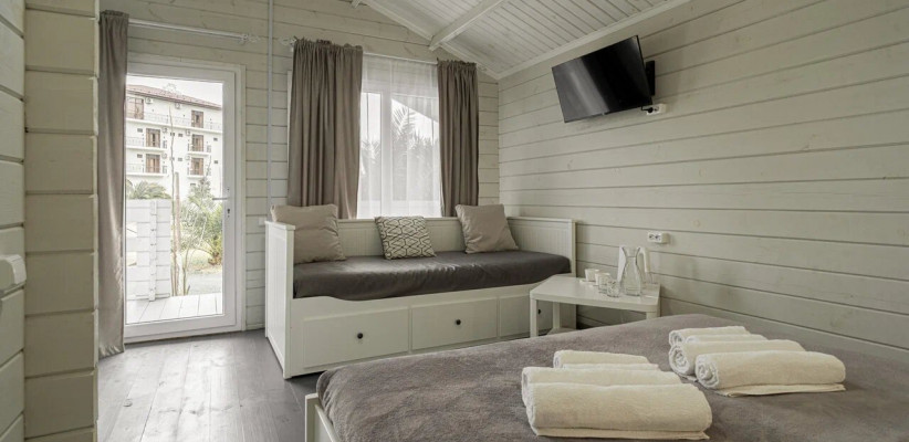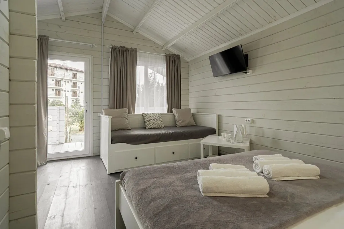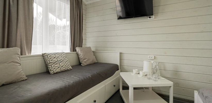 24-28 м2, двуспальная кровать или две односпальные кровати, диван, рабочая зона, терраса. Количество гостей: 4.Шале