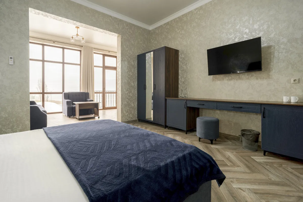 24-26 м2, двуспальная кровать, рабочая зона, балкон. Количество гостей: 3.Полулюкс