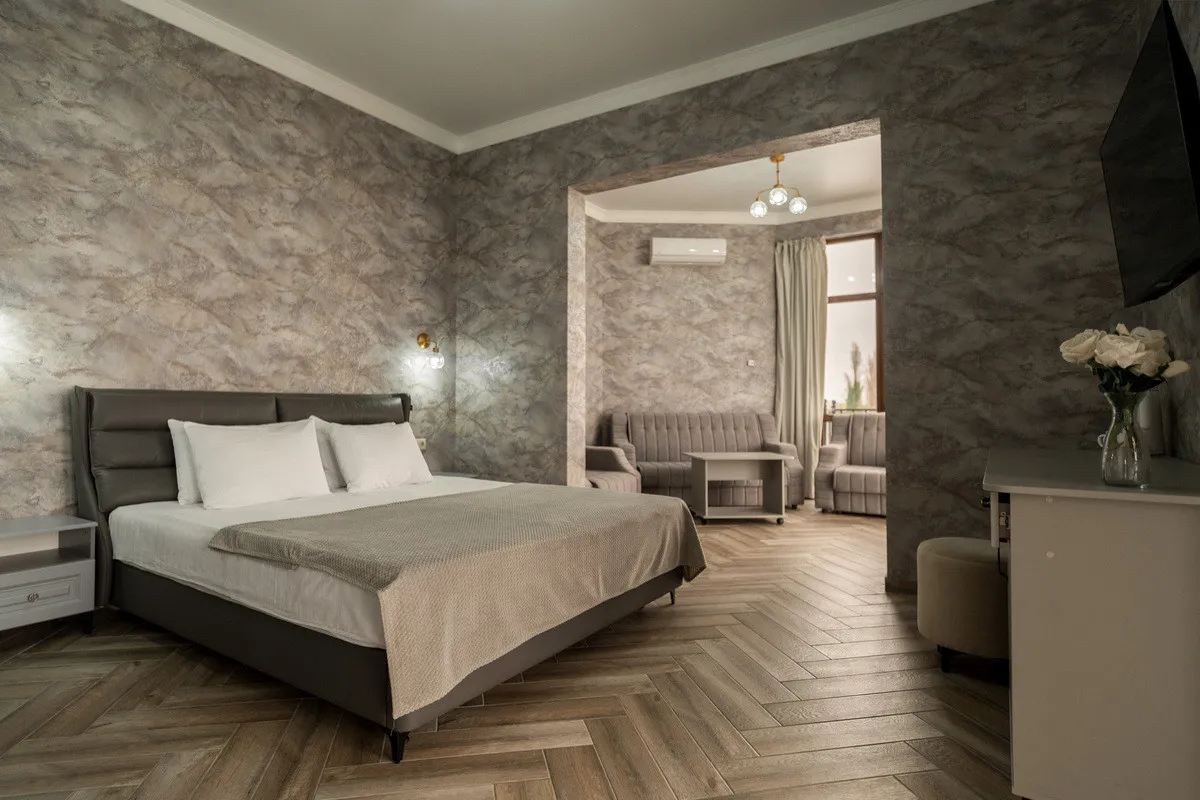 В отеле представлен выбор из восьми категорий – от стандартных номеров до люксов с панорамным видом на море.