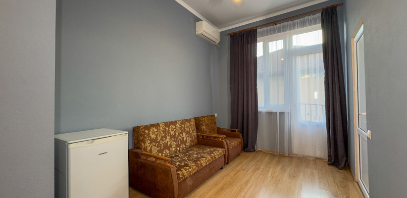 20 м2. №9 (2 места), 10 (2 места) 18 (кровать + диван). Две односпальные кровати 90х200 см, прикроватные тумбы, шкаф-гардероб, журнальный стол, стул, настенное зеркало. Балкон. Доп. место: диван-кровать, размер: 140х190 см. Один ребенок до 2 лет – можно без отдельного спального места. Количество гостей: 49 Трехместный однокомнатный Superior с балконом