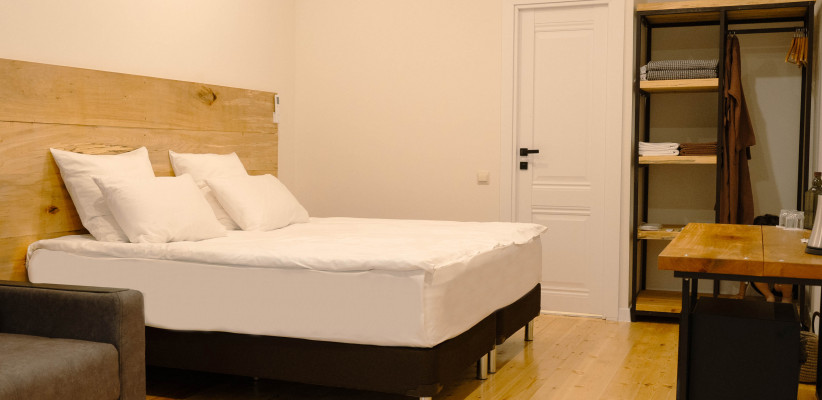 состоит из двух отдельных друг от друга номеров, каждый с отдельным входом и просторной террасой 6 м2. Внутри двуспальная или две отдельные кровати, а также рабочая зона с письменным столом. Есть диван-кровать. Количество гостей: 2-4 человека.