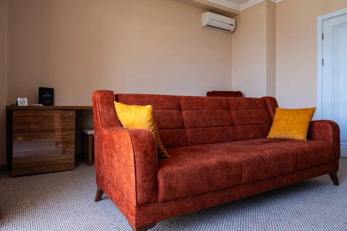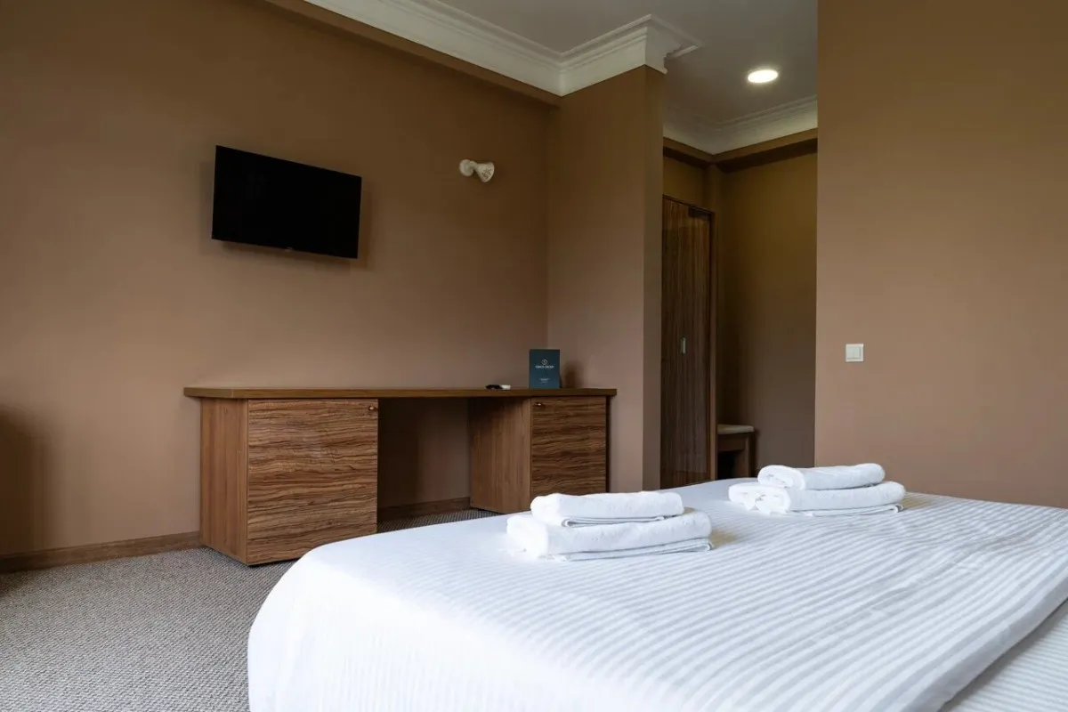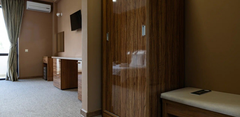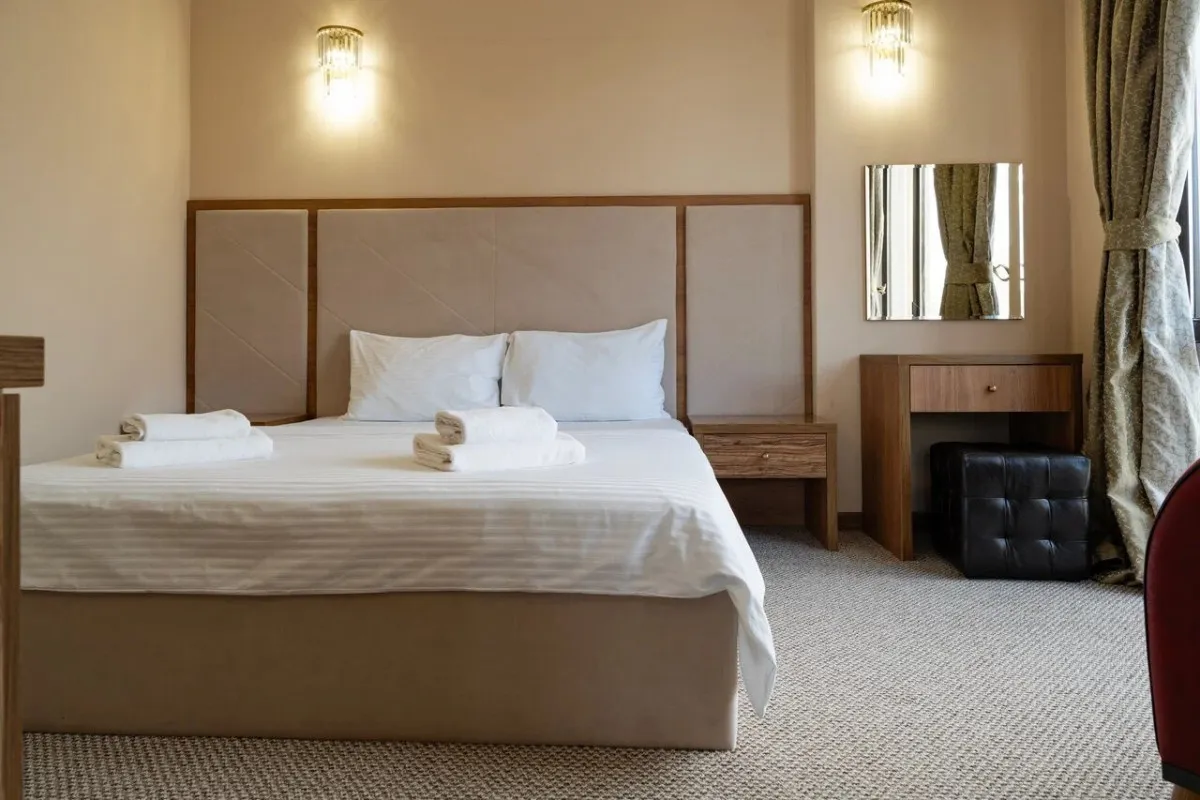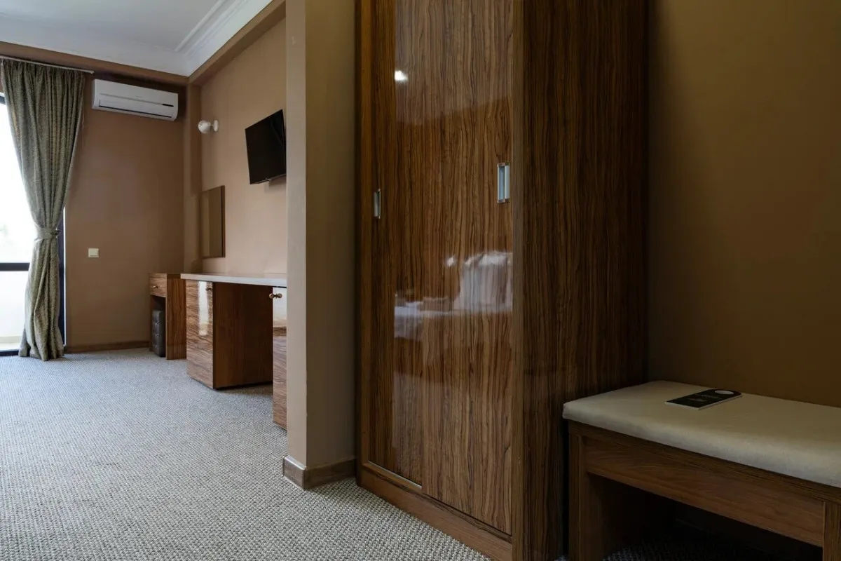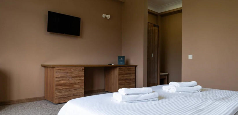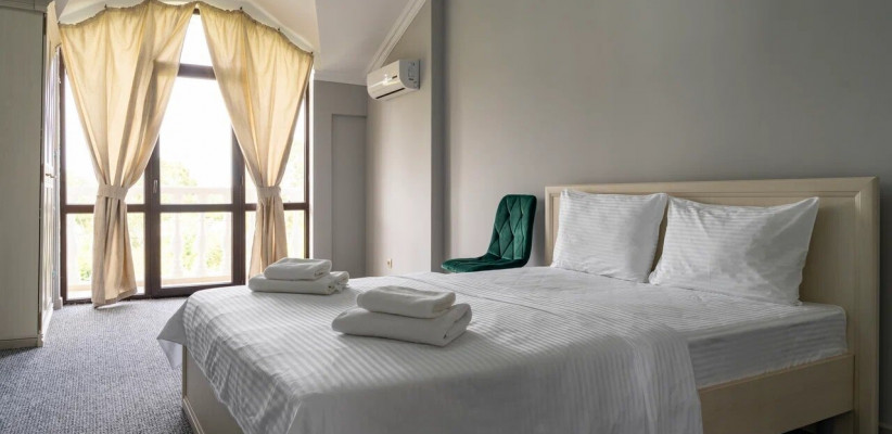 Здесь Вас ждут стильные однокомнатные и двухкомнатные номера с современными интерьерами, оснащённые всем необходимым для удобного отдыха – кондиционером и плазменным телевизором. Каждый номер продуман до мелочей, чтобы вы могли наслаждаться уютом и спокойствием.