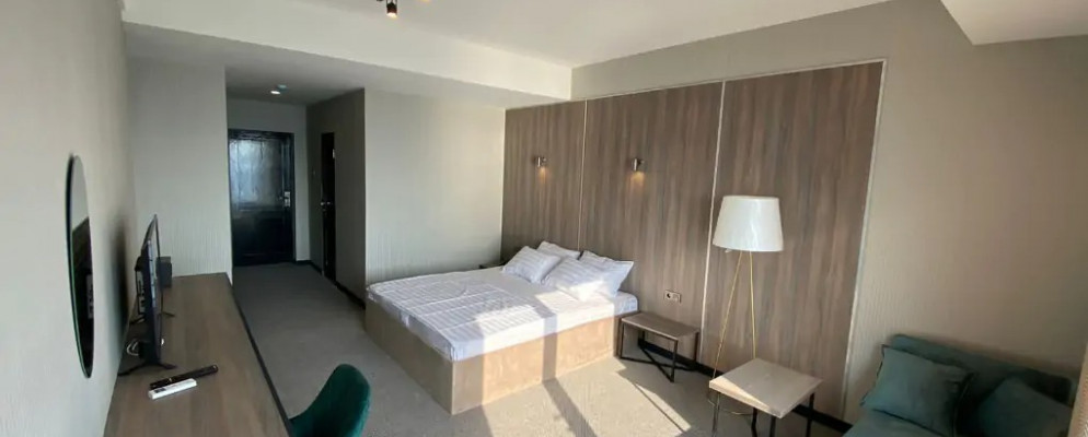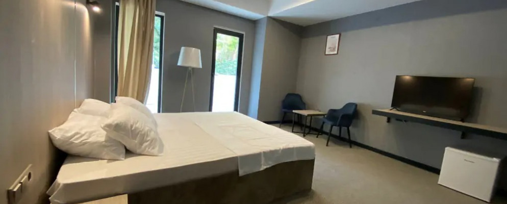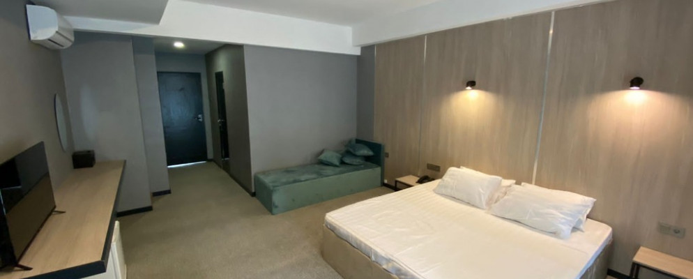 Prince Hotel Gagra – современный курортный отель на первой береговой линии в центре Гагры, идеально подходящий для спокойного отдыха у Черного моря. Туристы ждут номера с кондиционером, холодильником, телевизором и видом на море или горы, собственный оборудованный пляж с лежаками и зонтиками, а также завтрак по системе «шведский стол». Отель подойдет для пар и семей, которые хотят совместить пляжный отдых, прогулки по набережной и экскурсии по живописной Абхазии. Расстояние до международного аэропорта Сочи (Адлер) составит около 40 км.