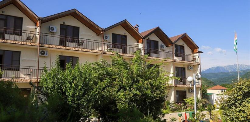 Отель «Резиденция Апсны» расположен в 18 км от международного аэропорта Сочи, в поселке Цандрипш.