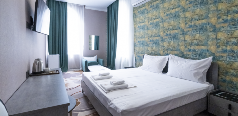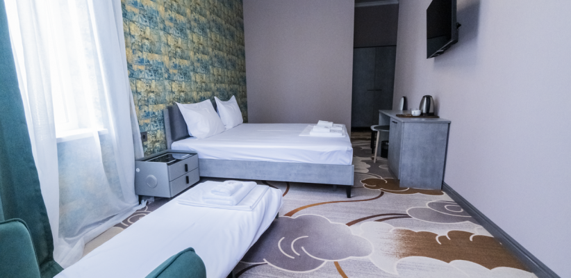 14-19 м2, двуспальная кровать или две односпальные кровати. Количество гостей: 2 + 1 на доп. местеПолулюкс 2-х местный 1-но комнатный номер с балконом c доп. местом