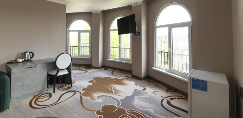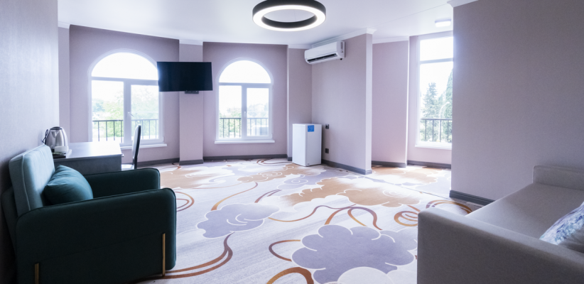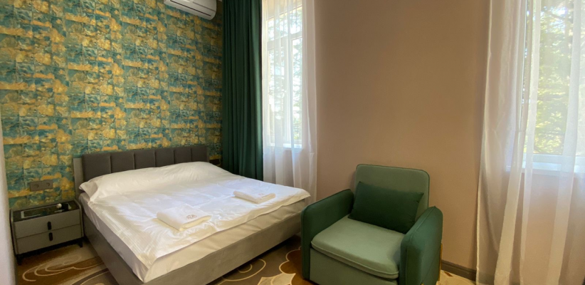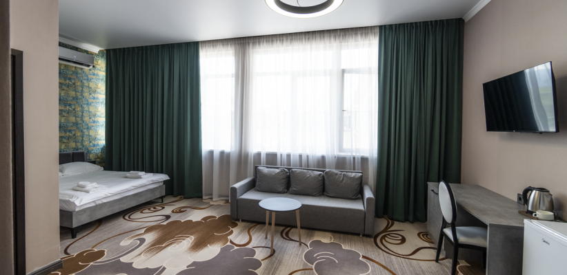 20-24 м2, двуспальная кровать или две односпальные кровати, диван или кресло-кровать, балкон. Количество гостей: 2 + 1 на доп. местеЛюкс 2-х местный 1-но комнатный c доп. местом с балконом