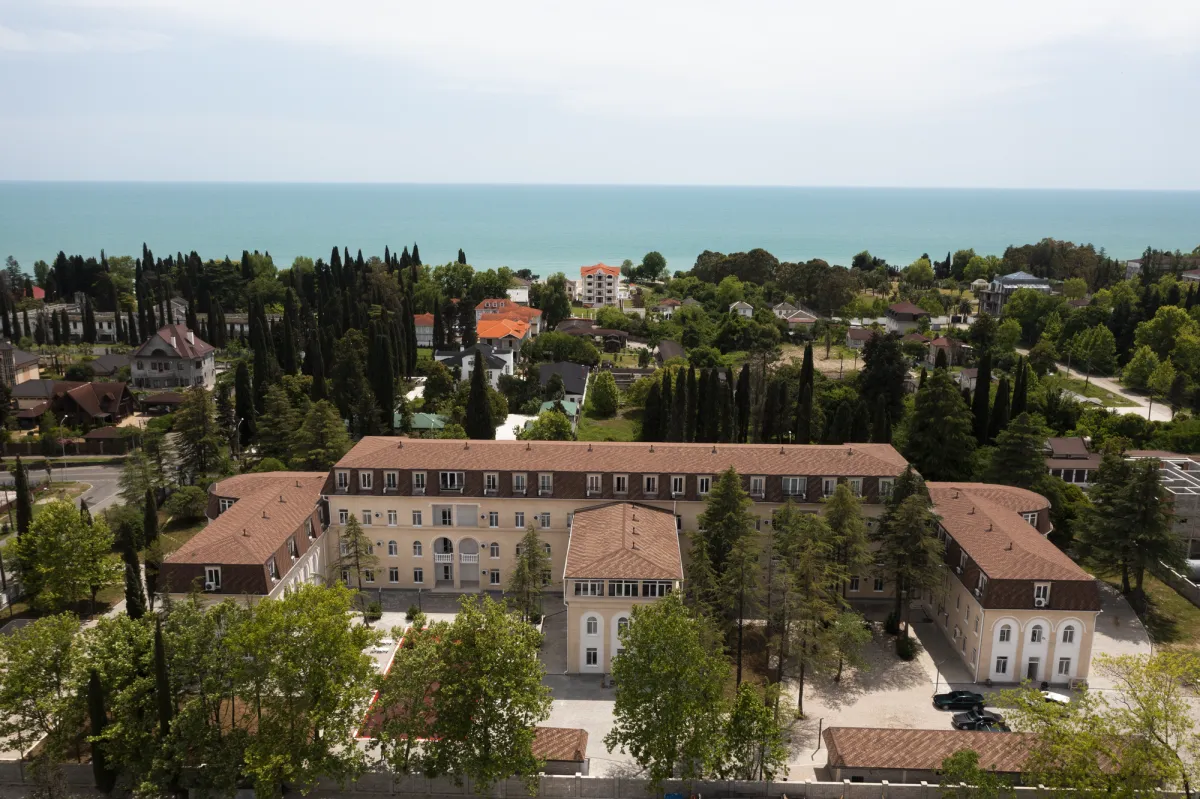 Отель «Волга» расположен в Республике Абхазия, в городе Гудаута, по адресу проспект Героев, 94. Современный курортный объект находится на побережье Черного моря и ориентирован на спокойный и комфортный отдых. Чистый морской воздух, мягкий климат и ухоженная зеленая территория с ландшафтным озеленением, пальмами, цветниками и тенистыми аллеями формируют благоприятную атмосферу для пребывания у моря.