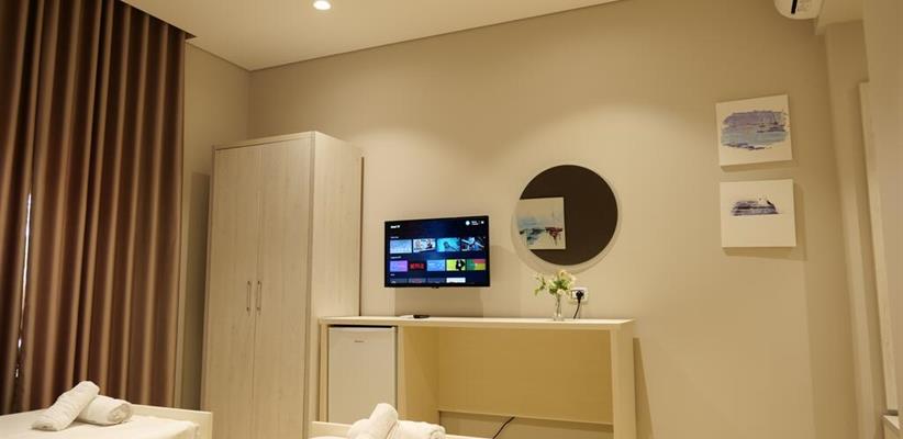 One-Bedroom Deluxe Apartment макс. размещение 4 взрослых, номер площадью 85 кв. м., в номере двуспальная кровать, балкон, вид на сад (на море), кондиционер, телевизор, мини-кухня, холодильник.