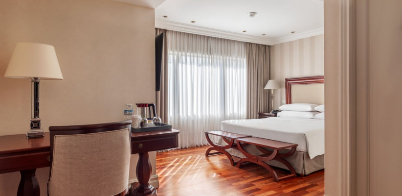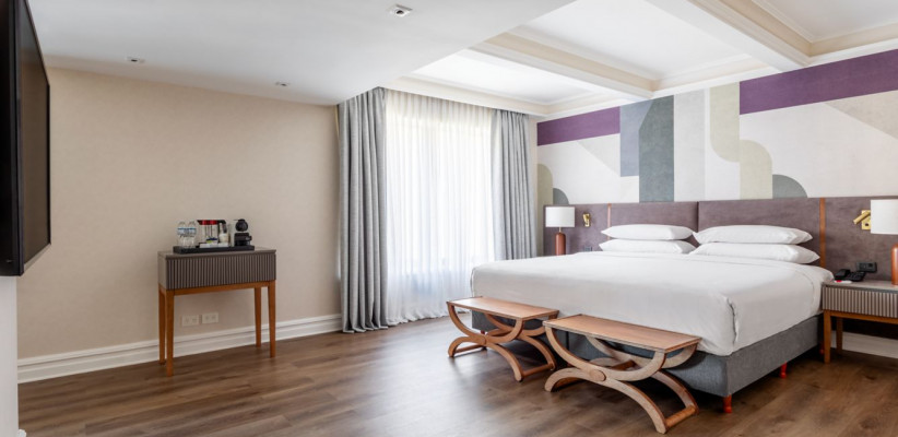 Гостям доступны номера и сьюты с городскими видами, развитая инфраструктура для отдыха и работы, а также спа-центр, крытый бассейн и фитнес-зона.