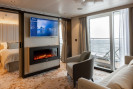 Описание: 25 м2, макс 3 чел, 6 палуба: кровати размера king или twin, голографический камин с эффектом живого пламени, зона гостиной с диваном и кофейным столиком, душевая кабина, панорамный балкон 5 м2.