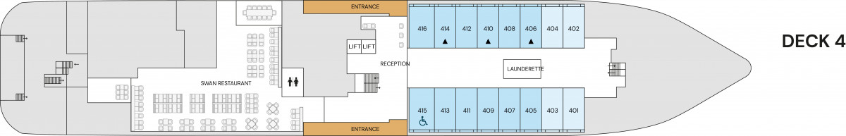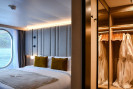 Описание: 20 м2, макс 3 чел, 4 палуба, в носовой части судна): кровати размера king или twin, голографический камин с эффектом живого пламени, зона гостиной располагает двумя панорамными окнами, диваном и кофейным столиком, душевая кабина.