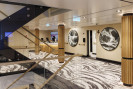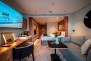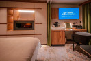 Описание: 47 м2, макс 4 чел, 6 палуба, в кормовой части судна: кровати размера king, гостиная оборудована большим голографическим камином с эффектом живого пламени, душ и ванна, гардеробная, панорамный балкон 12 м2.
