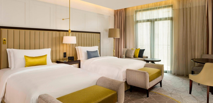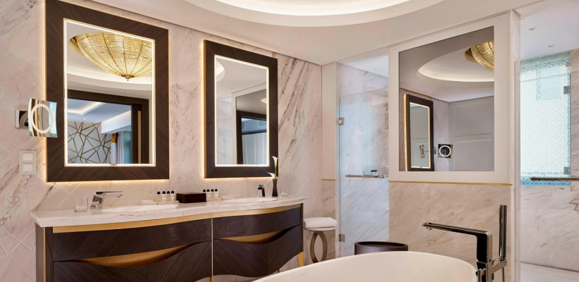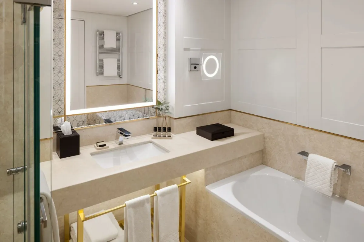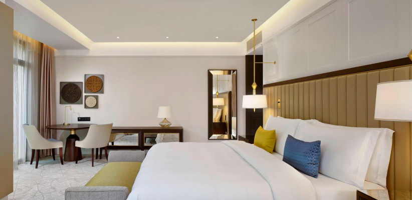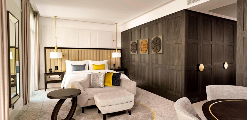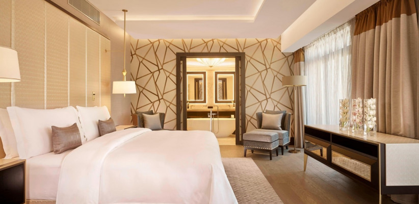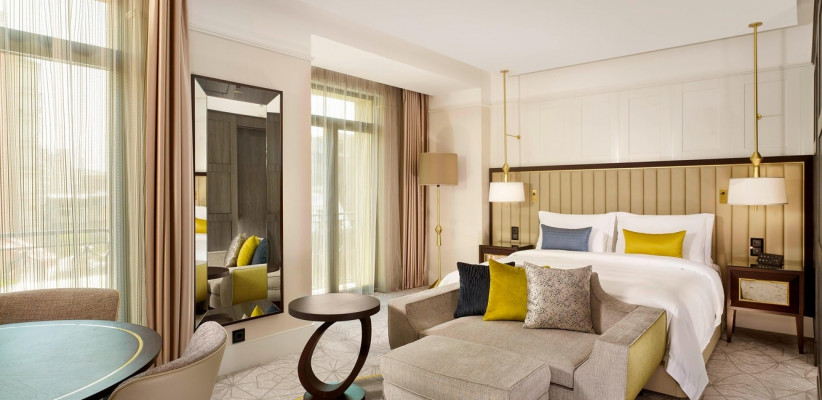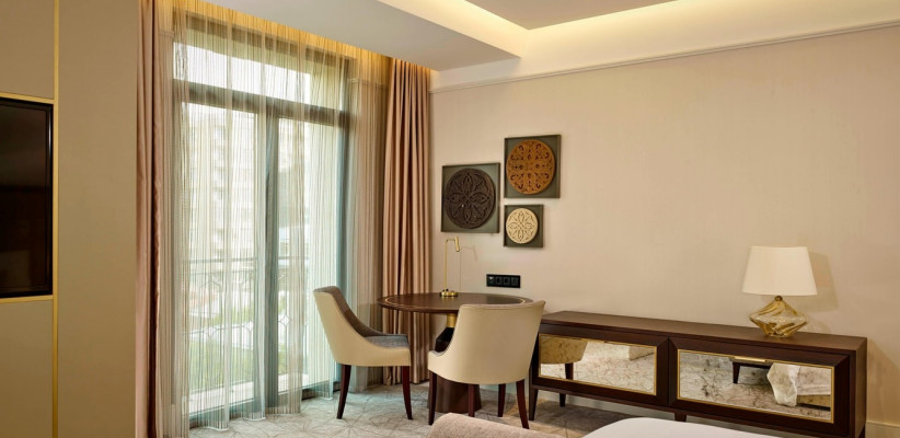 спальня с двуспальной кроватью размера king-size или с двумя односпальными кроватями, два кресла с кофейным столиком, отдельная гостиная, рабочее место, обеденная зона. Максимальное количество гостей: 2 или 3.