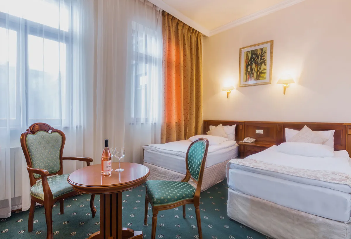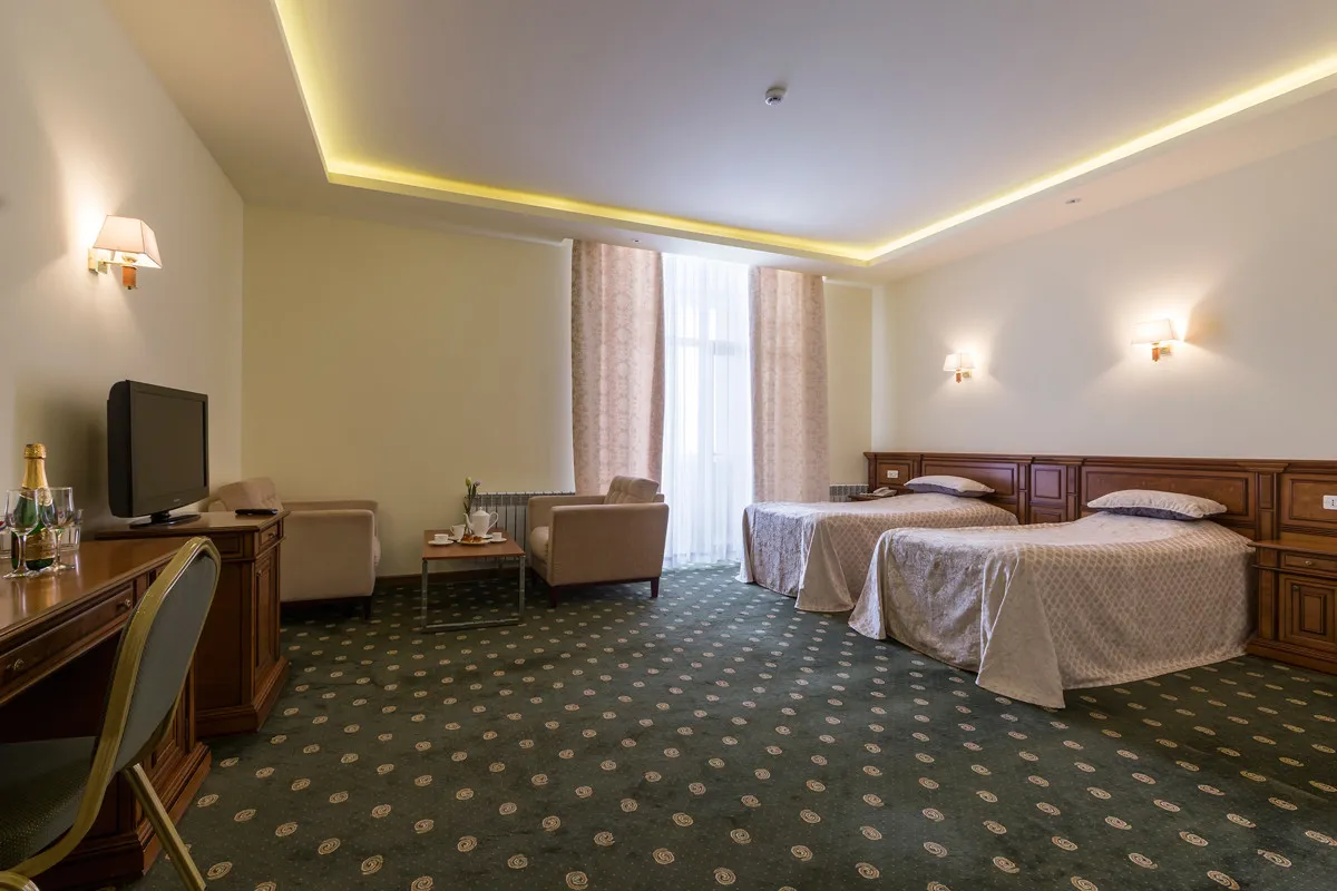 34 м2, с видом на город. В номере: двуспальная кровать и два односпальные. Максимальное количество гостей: 4