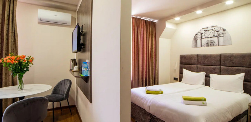Median Hotel City Center Yerevan – современный отель, открывшийся в 2019 году (ранее известный как Unique). Он расположен в самом центре города, на тихой улице Езника Кохбаци. Это стратегическая точка для туристов: до площади Республики и Оперного театра можно дойти всего за 10-15 минут. Интерьер отеля выполнен в лаконичном стиле: светлые тона, обилие дерева и качественный текстиль создают уютную, почти домашнюю атмосферу.