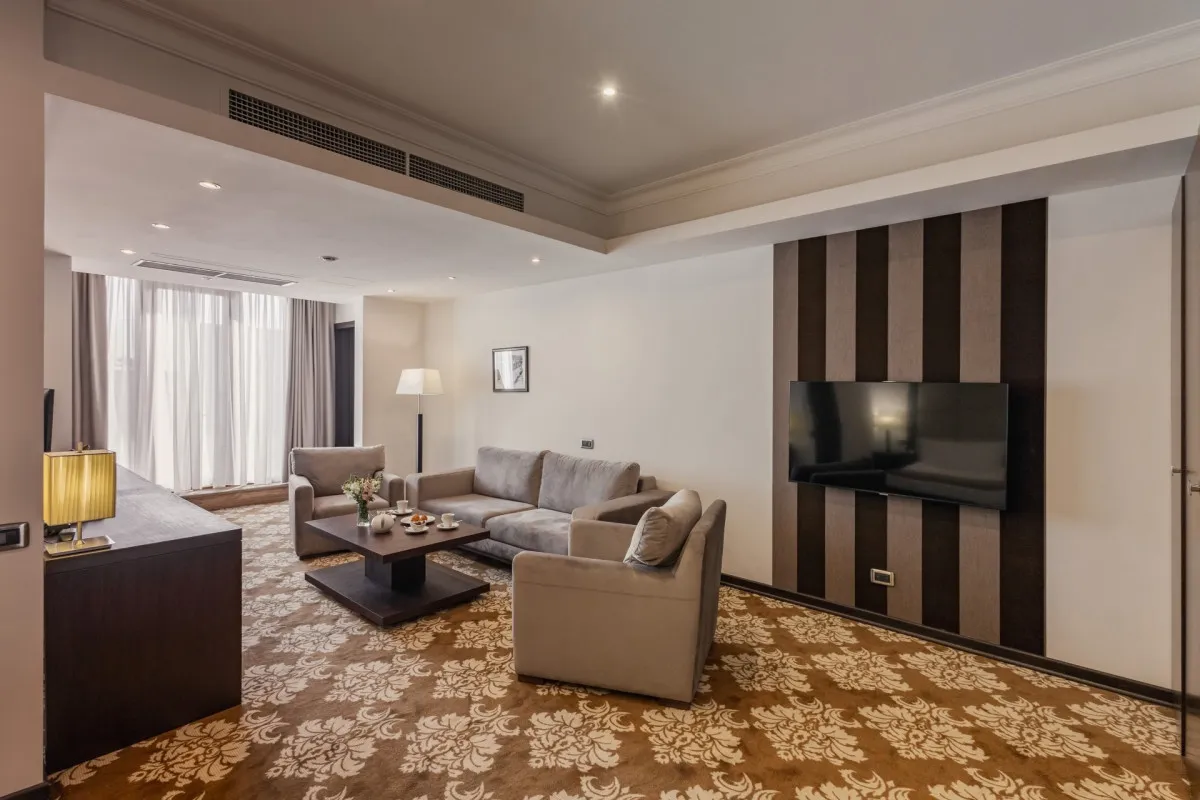 Гостей отеля ждут спа-услуги, фитнес-центр, крытый бассейн и высокий уровень сервиса. Здесь рады парам, семьям с детьми и бизнес-туристам. Это отличный пример премиального отдыха в столице Армении.
