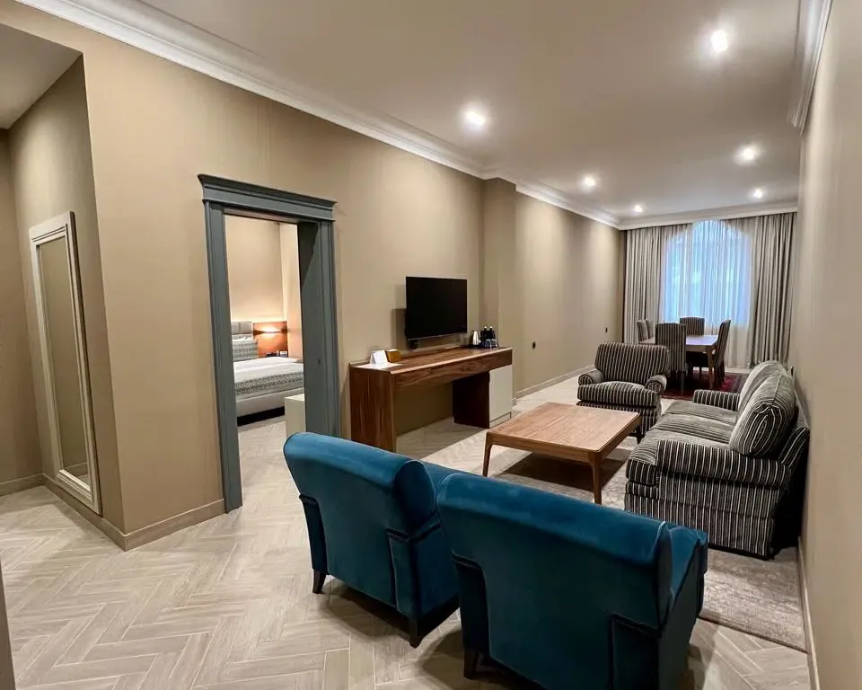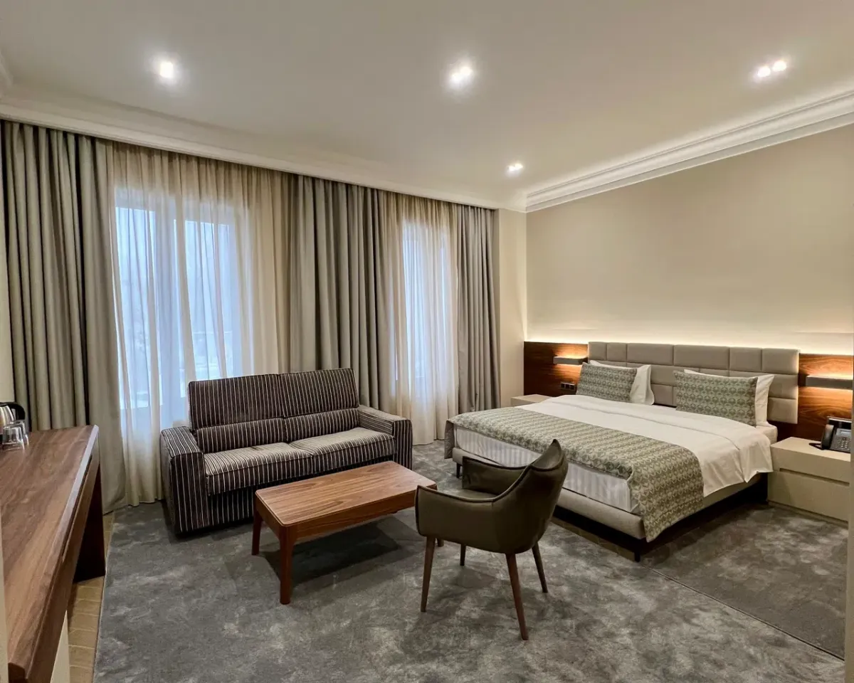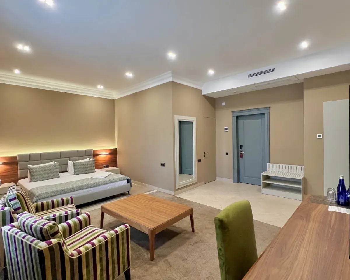 37 м2, королевская двуспальная кровать, гостиная зона. Количество гостей: 2Deluxe Twin Room with a sofa bed/ Делюкс