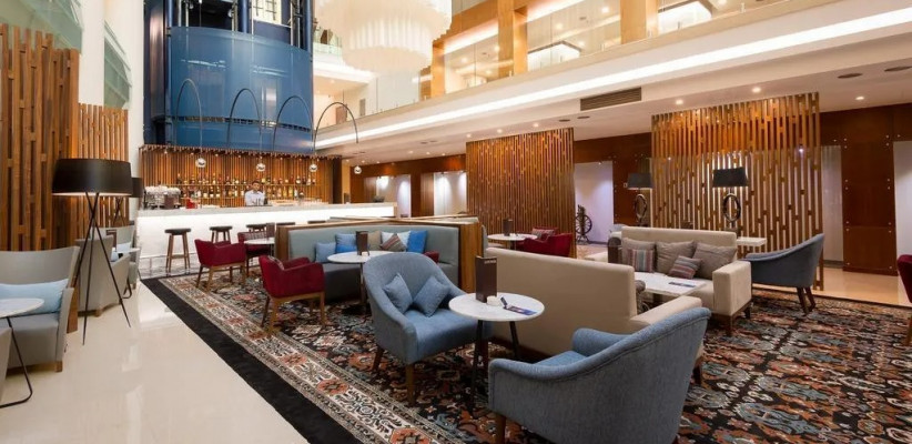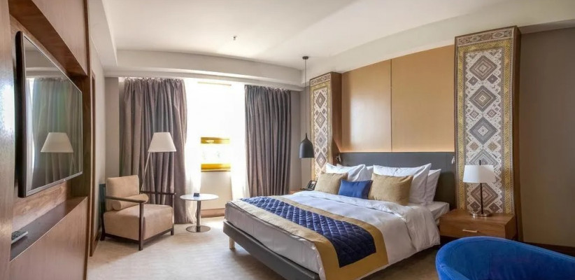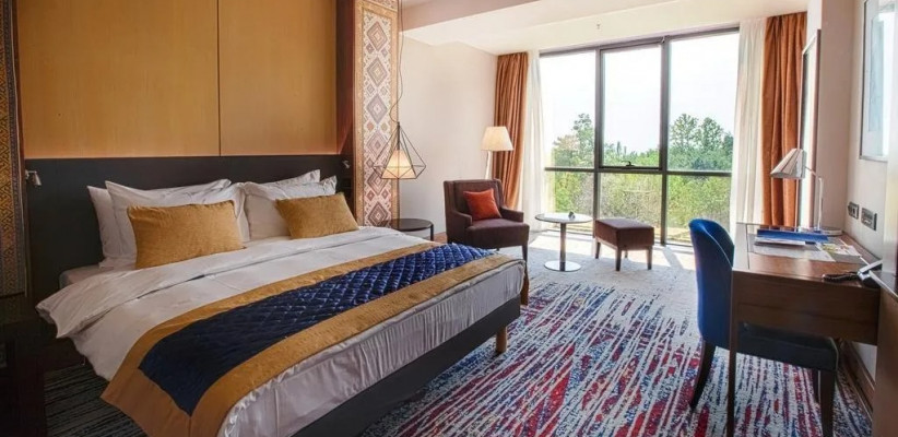 Отель Radisson Blu – это роскошный 5-звездочный отель, расположенный на возвышении на проспекте Азатутяна, рядом с Парком Победы и озером Арени, с панорамными видами на город и гору Арарат. Отель насчитывает 142 номера и люкса, оформленных в современном стиле с комфортной мебелью, качественным декором и всем необходимым для отдыха или работы.