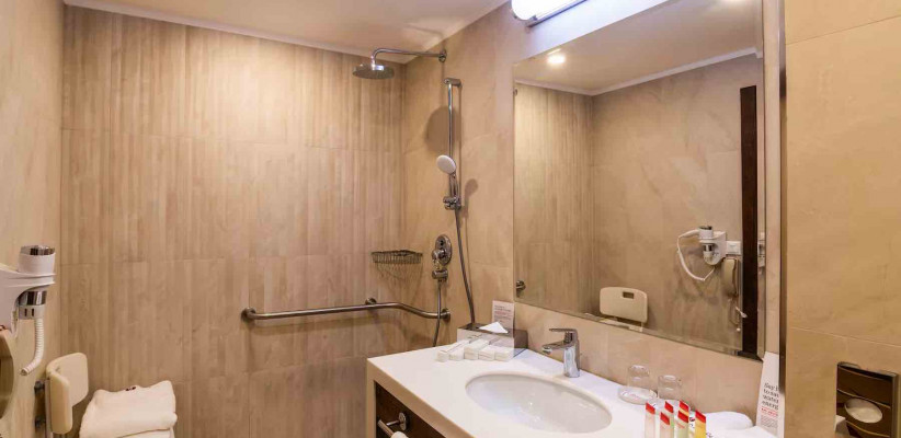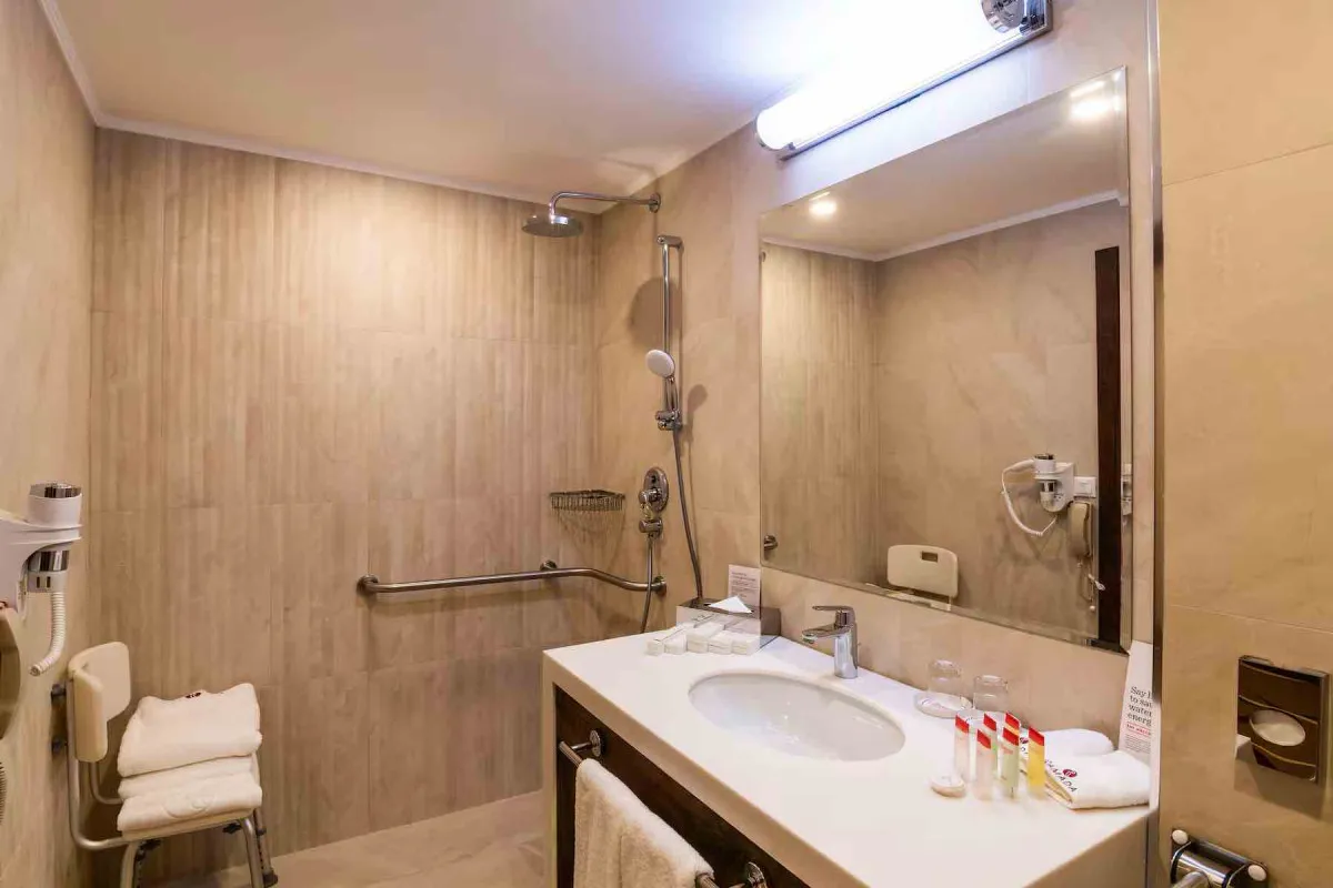 две спальни, king-size кровать и две односпальные кровати, гостиная зона, балконы, возможна установка дополнительной кровати. Максимальное количество гостей: 5 взрослых.Mobility Accessible Room, 1 King Bed