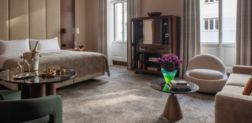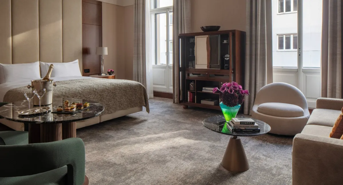 Отель предлагает 152 номера и люкса, включая просторные комнаты с балконами и видами на город. Для питания доступны несколько ресторанов и баров, включая ресторан с высокой оценкой Michelin Guide, а также опции для частного ужина и обслуживания в номерах.