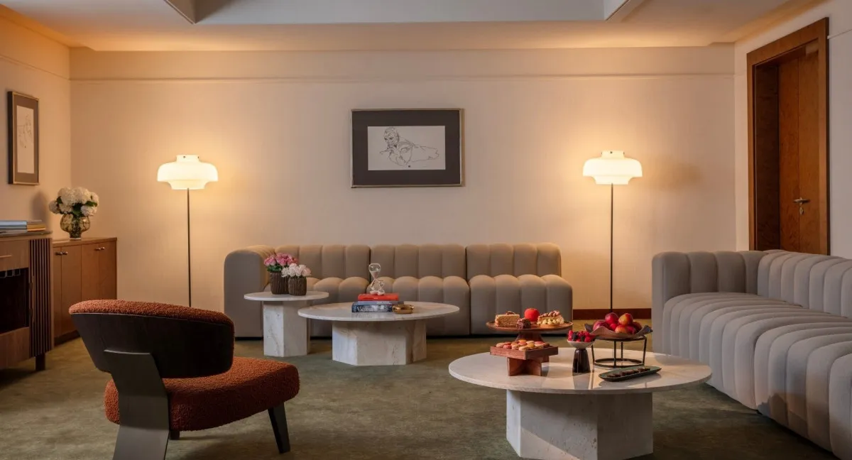 32 м2, с видом на внутренний двор, спальня с двуспальной кроватью размера king-size, гостиная зона с диваном, кресло с кофейным столиком. Максимальное количество гостей: 2.Premium Room