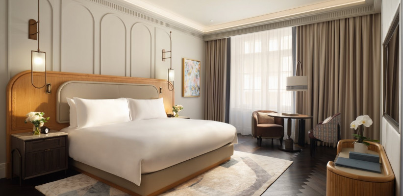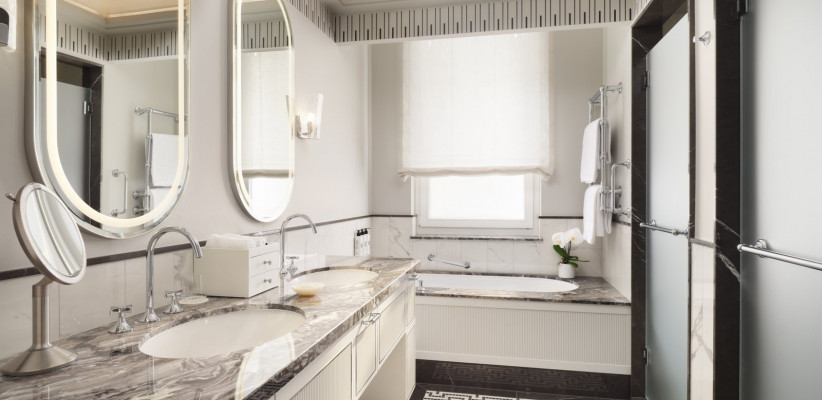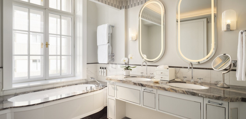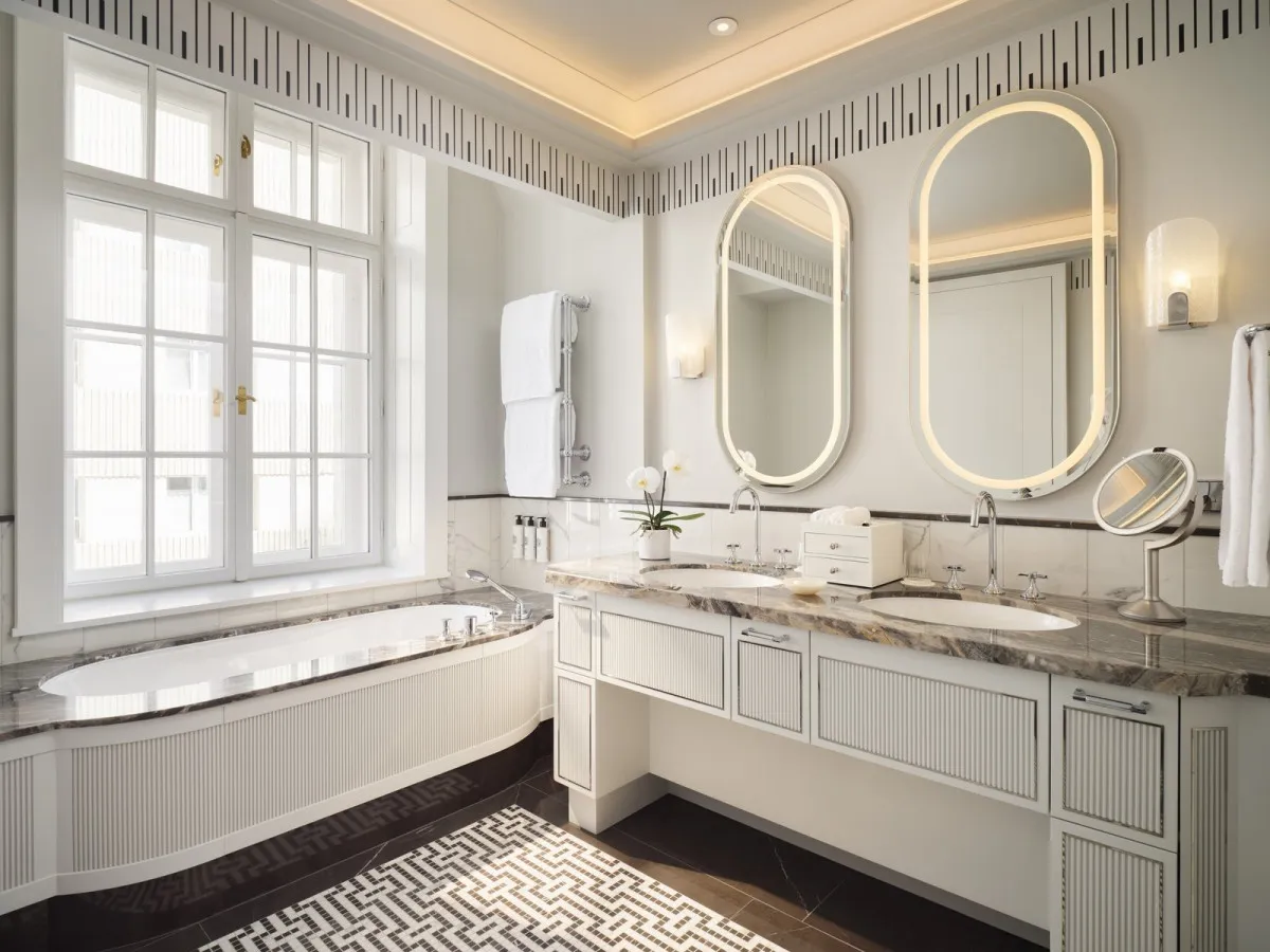 Номера и люксы Mandarin Oriental Vienna оснащены элементами исторического декора: высокие потолки, паркет, мраморная ванная, мебель на заказ.
