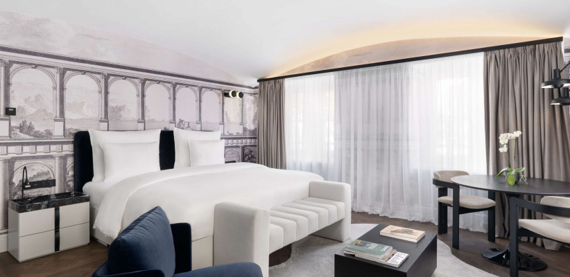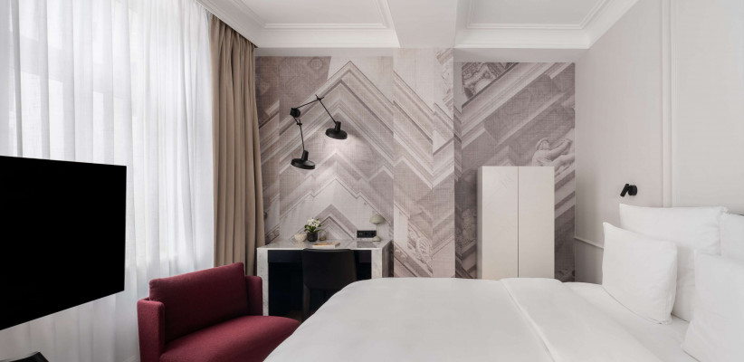 35-39 м2, с видом на бульвар, спальня с двуспальной кроватью размера king-size или с двумя односпальными кроватями. Максимальное количество гостей: 2.Grand Deluxe Room