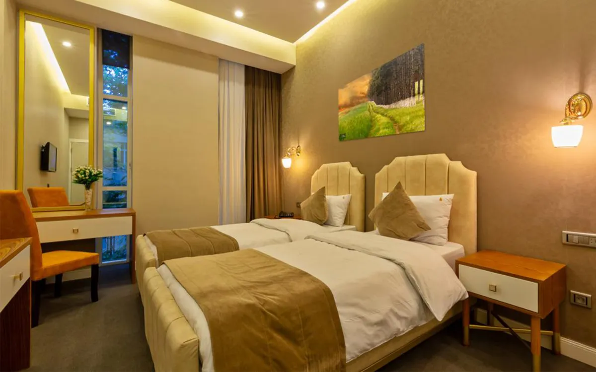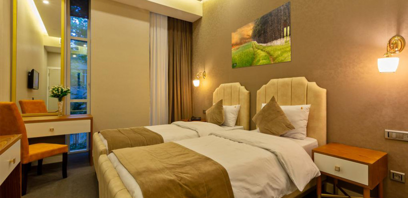 двуспальная кровать. Количество гостей: 2Номера с двумя односпальными кроватями