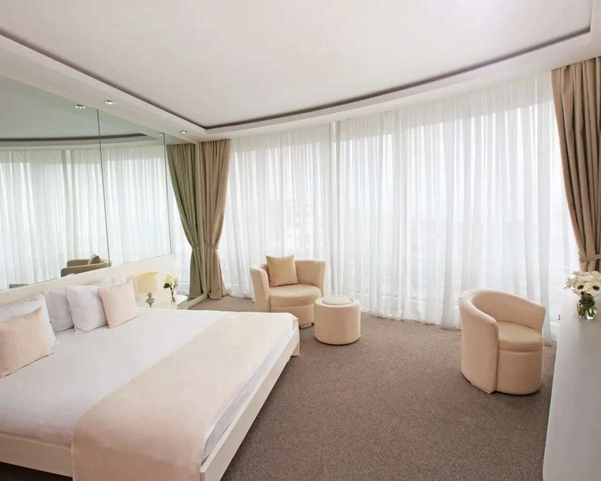 25 м2, спальня с двуспальной кроватью размера king-size или с двумя односпальными кроватями, два кресла с кофейным столиком. Максимальное количество гостей: 2 или 3.Junior Suite/ Джуниор сюит