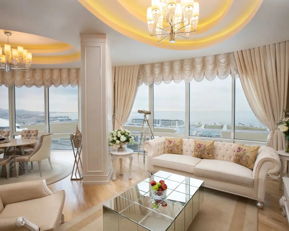 Отель Qafqaz Sahil Baku, расположенный в современном небоскребе, предлагает туристам стильные номера с панорамным видом на Каспийское море, фитнес-центр с залами для бокса и удобное расположение в деловом центре города рядом с набережной и крупнейшим развлекательным комплексом. Расстояние до центра города составляет около 3,5 км, а до ближайшего международного аэропорта – 23 км. Благодаря близости к станции метро «Хатаи» и железнодорожному вокзалу туристы могут легко добраться до главных достопримечательностей столицы, при этом дорога до аэропорта имени Гейдара Алиева по скоростной трассе займет не более 25-30 минут.