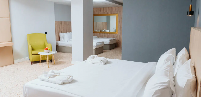 54 м2, вид на парк, две спальни (двуспальная кровать, две односпальные кровати). Количество гостей: 4