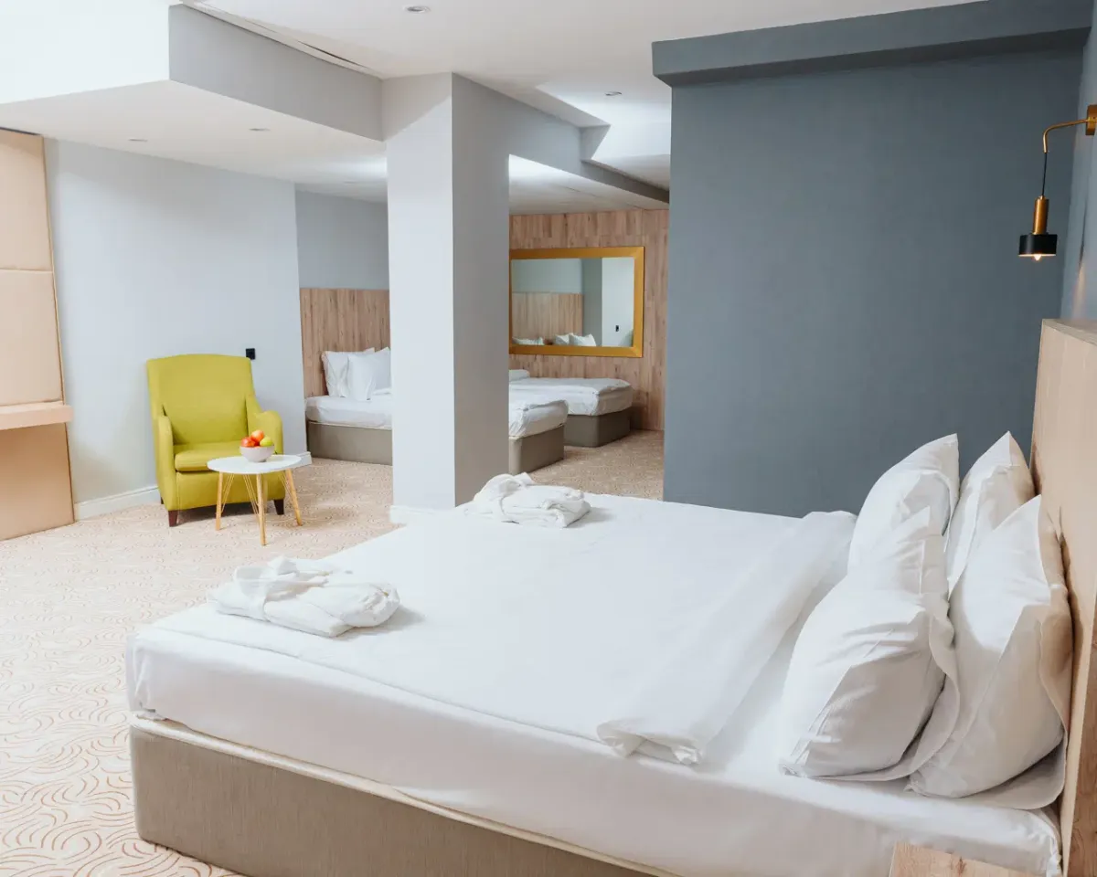 45 м2, вид на город, двуспальная кровать, односпальная кровать, раскладушка. Количество гостей: 4Семейный Делюкс