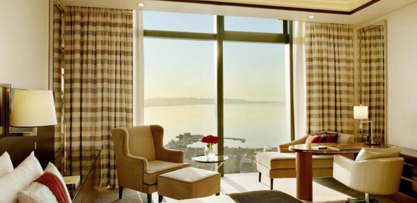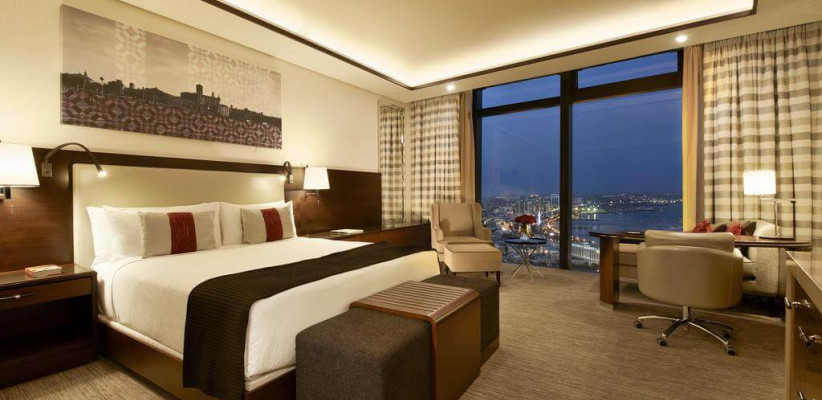 Интерьеры Fairmont Baku сочетают в себе сдержанную роскошь ар-деко и современные технологии. Визитная карточка Fairmont Baku – панорамное остекление во всех номерах: вы буквально просыпаетесь над городом, наблюдая, как солнечные блики играют на волнах Каспия или как зажигаются огни ночного Баку. Для ценителей исключительности действует концепция «отель в отеле». Туристы, отдыхающие в Fairmont Gold, получают доступ в частный лаундж на 19-м этаже с персональной регистрацией, услугами дворецкого и комплементарными закусками и напитками в течение всего дня.