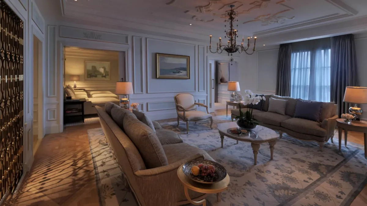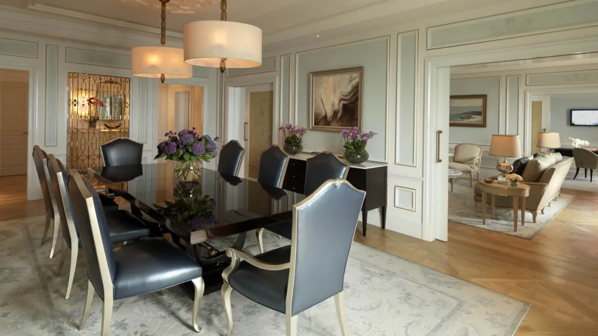 340 м2, вид на Каспийское море, две кровати king-size или одна кровать king-size и одна односпальная кровать, мини-кухня, столовая, собственный тренажерный зал, медиазал и личный кабинет. Количество гостей: 9 взрослых или 4 взрослых и 5 детейPanoramic View Two-Bedroom Suite
