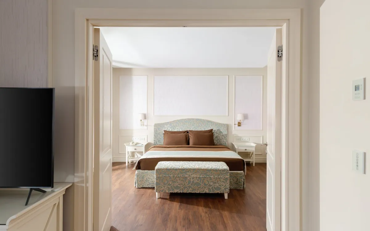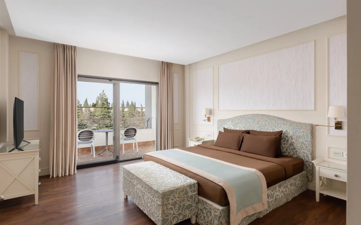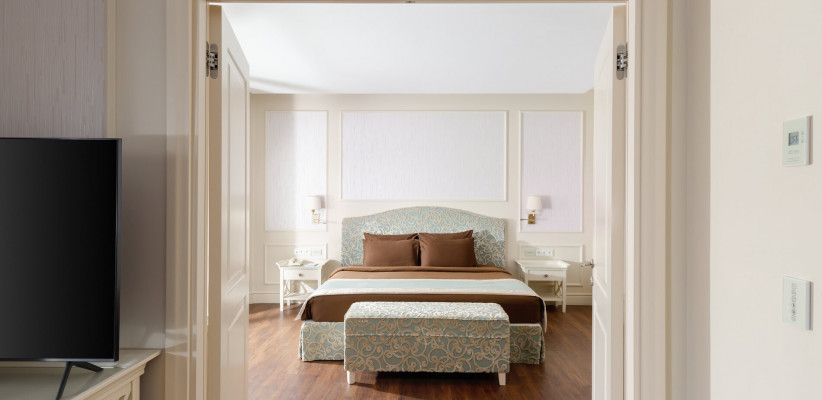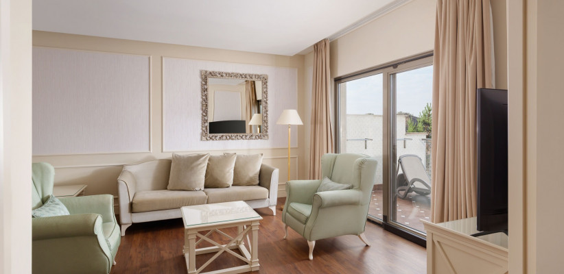 45 м2, номер с балконом, видом на бассейн или парк, двумя односпальными кроватями, душем в ванной комнате. Может быть объединен с другим номером Junior Suite или Executive Suite. Доступно размещение двух дополнительных кроватей. Максимальное количество гостей: 4 взрослых или 3 взрослых и 1 ребенок.Executive Suite