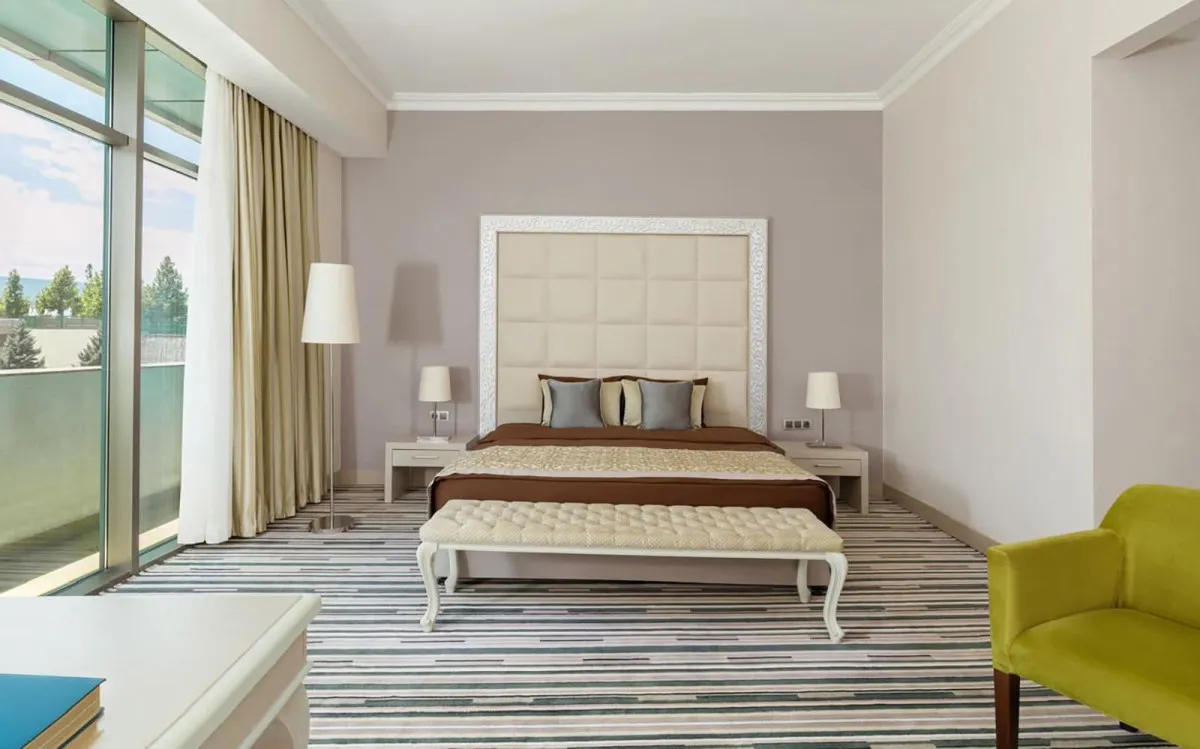 В отеле 163 номера, оформленных в современном или классическом стиле: