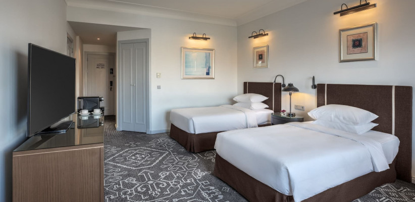 45 м2, номер с двумя односпальными кроватями, зоной отдыха, рабочей зоной, ванной комнатой с ванной и тропическим душем. В некоторых номерах есть балкон.2 Twin Beds with View