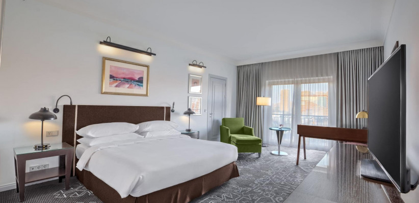 164 м2, номер с балконом, видом на город и сад, одной кроватью king-size, зоной отдыха, обеденной и рабочей зоной, ванной комнатой с гидромассажной ванной и сауной, бесплатным американским завтраком в ресторане Mezzo, доступом в конференц-зал и эксклюзивный лаундж Regency Club. Доступно размещение дополнительной раскладной кровати.