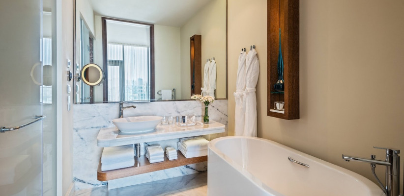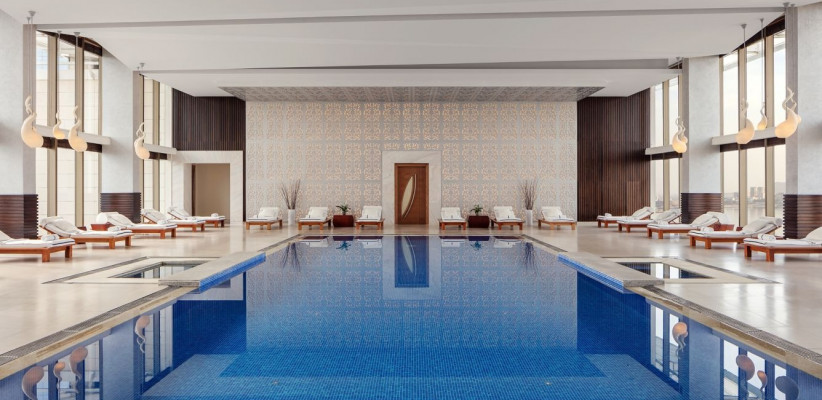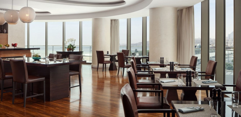 - Роскошный спа-центр, крытый бассейн и фитнес-зал расположены выше 20 этажа, открывая гостям завораживающие виды на Баку и Каспийское море.