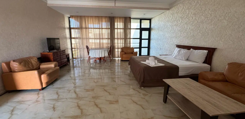 60 м2, балкон, две кровати, гостиная, ванная комната с джакузи. Максимальное количество гостей: 6Люкс