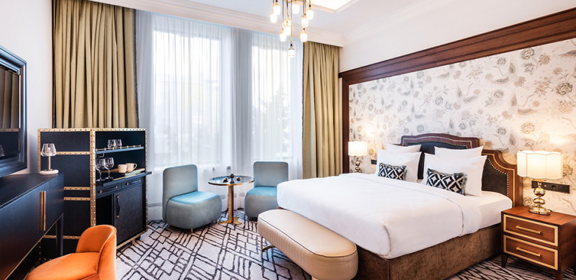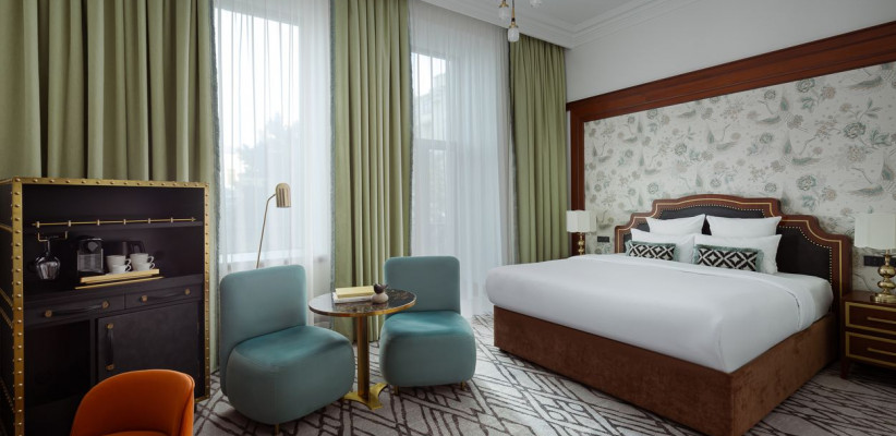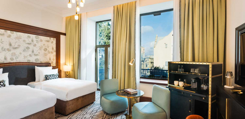 Номерной фонд отеля составляет 63 роскошных номера, каждый из которых имеет уникальный дизайн и сочетает в себе изысканные французские архитектурные стили «ар-деко» и «ар-нуво».Accessible room