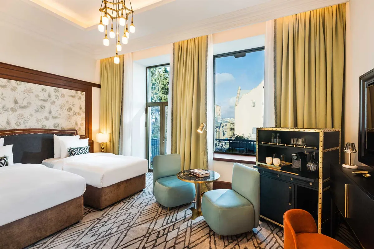 Отель The Merchant Baku — это элегантный бутик-отель в самом сердце Баку, размещённый в историческом здании 1858 года, когда-то бывшей штаб-квартире Каспийского морского пароходства. Архитектура и интерьер отеля создают впечатление роскошного круизного лайнера, где богатое наследие переплетается с современным стилем и вниманием к деталям. Благодаря своему расположению отель находится в шаговой доступности от главных достопримечательностей.
