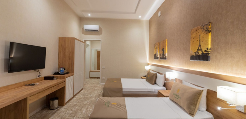 Отель Merida расположенный в удобном и спокойном районе Нариманов. Здесь созданы комфортные условия для отдыха и деловых поездок: стильные номера, внимательный сервис, Wi-Fi, лобби-бар и круглосуточная поддержка туристов. Поблизости находятся кафе, магазины и станции метро, что делает отель удобной отправной точкой для изучения Баку. Расстояние до Международного аэропорта Гейдара Алиева составит примерно 25 км.