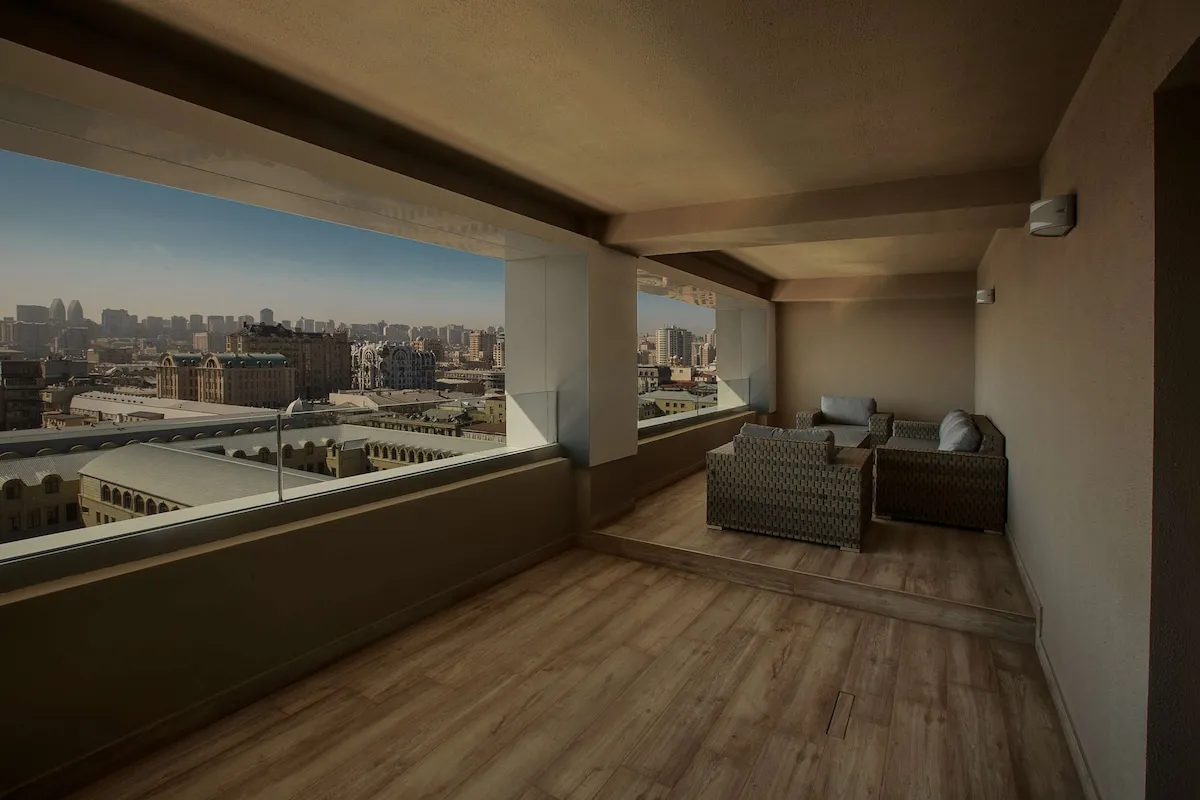 87 м2, 1 двуспальная кровать, отдельная гостиная, полностью оборудованная мини-кухняOne Bedroom Apartment with Terrace - Caspian Sea View/ апартамент