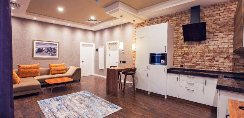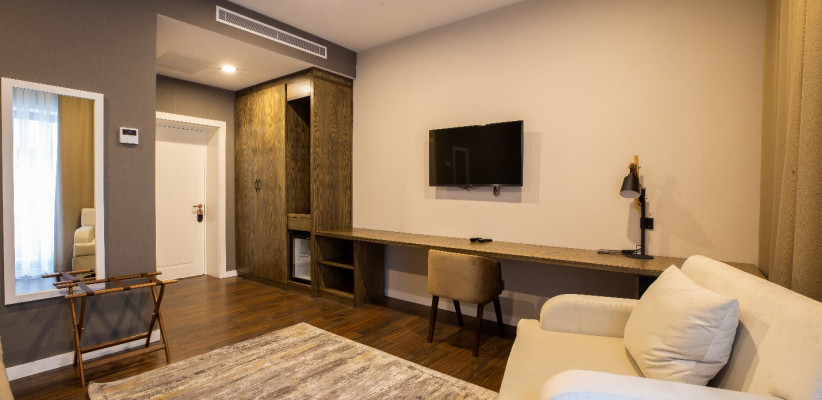 21 м2. В номере: king-size кровать.Апартаменты с одной спальней (1+1)